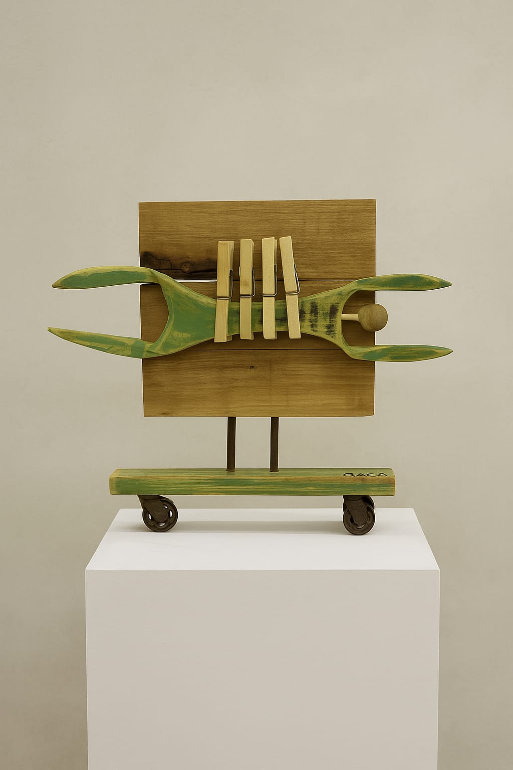 "Onírica" es una exploración escultórica del lenguaje simbólico de los sueños. A través de materiales encontrados, imágenes del pasado, cuerpos fragmentados y estructuras que sugieren encierros o fugas, esta serie indaga en la psique humana desde una mirada poética, cruda y visceral. Cada pieza es un umbral hacia el inconsciente: los objetos hablan como en el sueño, donde todo tiene múltiples capas de sentido.